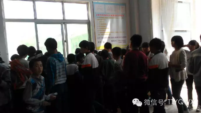 同学们开心的排队打水